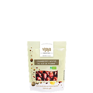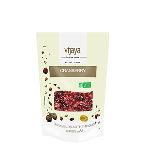 Originaire du Canada, la Cranberry Séchée VIJAYA, à la saveur légèrement acidulée et d’un beau rouge intense, est proposée sous 2 versions : l'une infusée au jus de canne et l'autre infusée au jus de pomme.